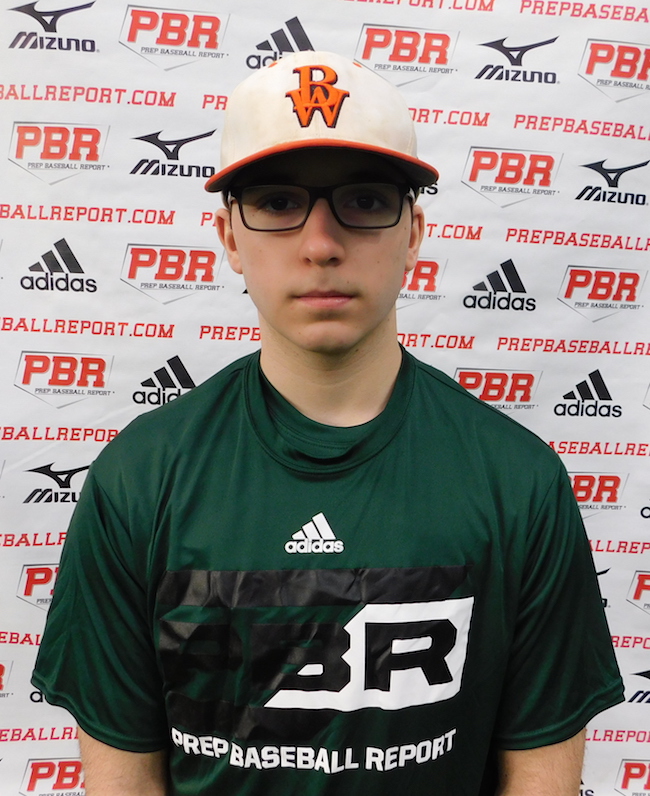 5-foot-11, 185-pound strong frame. Open athletic setup striding in line. Hands trigger late, but a short quick path allows him to get barrel out front. Bat path has some tilt to it and showed the ability to hit for gap to gap power with an exit velocity of 82 mph. Stayed behind the ball well and finished through extension with balance. Behind the plate was quick on transfer with a high exchange point to a short quick arm action from a low three-quarter slot at 65 mph. Throws were consistent around the bag, but added arm strength and consistently finishing backside through throws will help pop times that ranged from 2.20-2.25. 60 time was 8.10.