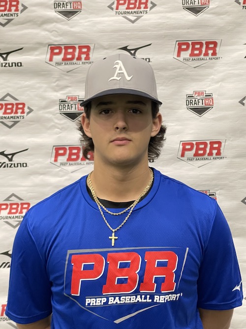 Swails is 5-10 with an athletic frame that has some strength present and plenty of projection left to it. He hits from the right side from an open balanced athletic stance, strides on line, smooth load back to a slight wrap. Hips rotate completely with some violence and he maintains some lower half balance. Hands stay inside, short and quick to the ball, slightly uphill line drive swing path with strength at contact and some extension through the ball, showed a good approach using the whole field, has some gap power present with more pop in the tank, exit velocity was 88. In the infield, gets body behind the ball and fields with a wider base and average hands, works through the ball during exchange, throws from a low three-quarters arm slot, short arm action, position velocity was 76. Ran a 4.28 home to first. On the mound, he throws from a three-quarters arm slot, short loose quick arm action with normal effort to his delivery. Drop and drive delivery, shoulders are uphill and closed, lands closed with a slight fall off finish. Fastball was 77-80, with some downward plane to it and some late armside run to it. Curveball was 66-68 with good armspeed and sharp 11/5 break to it. Change-up was 75-77 with good armspeed and heavy sink.