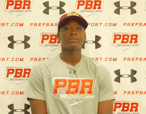 5.22.16: Hits from an athletic, balanced stance that stood square. Strong frame. Slight load back with short, controlled stride. Bat exit velocity of 72 MPH. Level swing path that pulls off. Throws from a quick, high three-quarters arm slot with some accuracy. Positional velocity of 73 MPH. Average hands with clean footwork that worked through the ball.