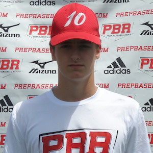 5-foot-9, 145-pound right-handed hitting corner infielder. Ran a 7.44 sixty on the laser at the event. The glove is solid in the field, needs to keep the feet active during the fielding process. The ability to work through the ball will aid the process. Threw 67 mph across the diamond, the arm can benefit from an off-season throwing program. The bat has a tee exit velocity of 77 mph. The setup is even in base, steps into the swing. The back elbow starts high, and there is length to contact. The finish is cut off after contact, will be helpful to accelerate through the ball. The frame needs added strength to it.