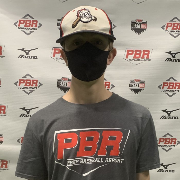 5-foot-11, 140-pound right-handed hitting outfielder and pitcher.. As a positional player he ran a 8.3 sixty at the event. The approach in the outfield is aggressive and online, throwing 75 mph to the plate. The actions are athletic and free. The bat has a tee exit velocity of 74 mph. The setup is wide in base, uses a knee to knee approach on the bottom half as the ball approaches. The hands maneuver the bat freely. The path is long and flat to contact. The frame needs physical strength added to it. On the mound, the fastball touched 74 mph, arm side action to the pitch. The breaking ball needs additional fastball hand speed to it, as it sits at 66 mph. The changeup is 63 -65 mph with solid action to it. The feet are online during the delivery and the slot is slightly above 3/4. The tracking of the front shoulder can improve as he matures in age. I like the potential across the board for him.