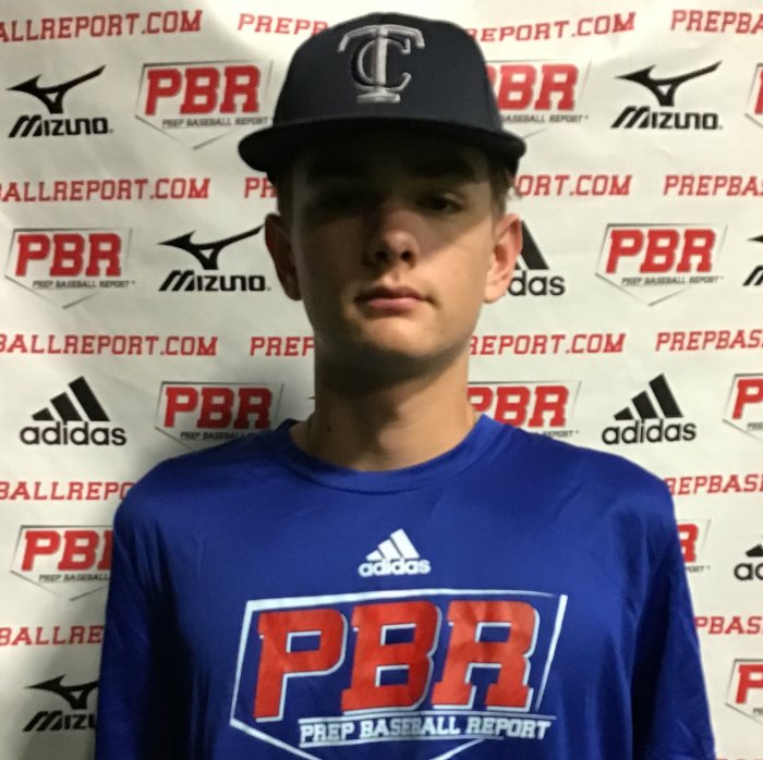 Ozzie Weber: RHP/3B, (2024) McCann, MA. 6-foot-1, 155-pound athletic frame. Solid during batting practice, the right-handed hitter recorded an exit velocity of 88 mph. Begins in a balanced stance with an arm bar load, then uses a long stride. Bat speed is average, has a long swing plane and level finish. Found some barrels with loud contact. Aggressive approach. Capable while in the infield, made throws up to 81 mph; had developing footwork, raw hands, and a developing exchange. Laterally, movements were developing and fielded the ball out front. Using a loose arm action, showed consistent accuracy to the bag from a ¾ slot. Projectable on the mound, showed quick arm speed with a ¾ arm angle and a loose arm action. Up-tempo type pitcher and shows decent effort. Falling off shoulders and an athletic balance point. Lands open with a falling off finish. Sat with his fastball at 80-81 mph; has running action and occasional control. Had control around the zone and gradual action on his changeup (69-71). Showed sweeping action and control around the zone on his slider (75-76).