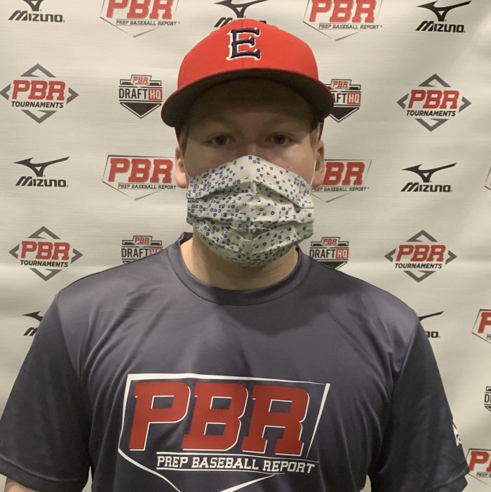 5-foot-5, 170-pound right-handed hitting corner infielder and pitcher. Ran a 8.4 sixty at the event. The approach in the infield is solid, needs to keep the feet active during the fielding of the ball. He showed soft hands and threw 62 mph across the diamond. The bat has a tee exit velocity of 76 mph. The setup is open to start, the front foot closes down as the ball approaches the hitting zone. The path is long to contact, needs better direction at the initiation of the swing as the bat head drags. On the mound, the fastball sat 70 -72 mph. The breaking pitch is 66-67 mph, solid in shape and form. The changeup is a developing pitch, sitting 50-53 mph. The delivery is online with the feet and the slot is above 3/4. The arm swing is short on the back side as he gets under the ball at release at times. The lift is methodical and cautious.