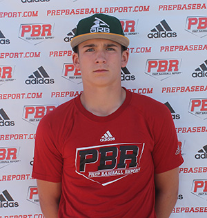 6/21/17 - 5-foot-8, 150-pound right-handed hitting third baseman. At the plate hits from a wide base with a balance setup. Short leg lift stride with average balance. Pull hitter with a long swing path and raw bat speed. 81 mph exit velocity from a tee. Ran the 60 at 7.56. Defensively has a loose arm action from a high ¾ slot. Threw 77 mph across the infield. On the mound works from an over the top arm angle with a short, quick arm action. Tall and fall delivery with a square landing working in line with home plate. Fastball has tilt at 74-76 topping out at 77 mph. Curveball has gradual action at 55-57 mph. Changeup has running action at 66-67 mph.