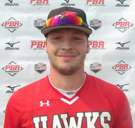 6-foot, 190-pound two-way prospect with strong, thick build. At the plate, right-handed hitter, wide/open base, hands set high, short stride to square. Hands drop into long and uphill path, quick bat speed with premium bat strength, loud on contact, extension through the baseball with power potential; 83 mph exit velo off the tee. Defensively, stays tall, long arm action, high ¾ slot, pop times ranged from 2.10 to 2.16. Throws feature some carry, 75 mph. On the mound, tall/fall type, long draw, long arm action and high ¾ release, short stride to target, square landing. Fastball, some downhill tilt, carry through zone, 79-82 mph, touched 84 mph. Curveball, some feel to spin, 11/5 action, 65-68 mph. Changeup, decelerates arm speed, some fade, 64-67 mph. A 7.82 runner in the 60.