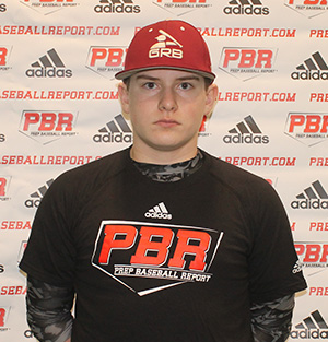 1.27.18 - 5-foot-10, 185-pound two-way player. Corner infield defender, arm is short and over the top, 75 mph across the diamond, showed best at first base. Right-handed hitter, balanced stance, leg kick stride, average balance. Path is long and level, works around the baseball, pull side approach. 84 mph exit velocity from the tee. On the mound arm action is short and over the top, some effort. Fastball is straight, 73-74 mph, straight action. Curveball has 12/6 shape, near fastball arm speed, 60-65 mph. Changeup has slight sink, 70-72 mph. Cutter lacks actions, straight, 72-74 mph.