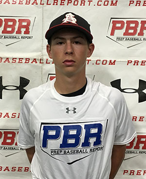 10/24/15 - 5-foot-10, 150-pound two-way player, thin build. Right-handed hitter, balanced stance, short stride, average balance. Made deep contact on level path, 77 mph exit velocity from the tee. Defensively plays with a loose over the top arm action, 75 mph across the diamond. Showed ability to play through the baseball with some actions. On the mound delivery is clean, squared landing. Fastball is mostly straight 76-78 mph, topped at 79 mph. Curveball has 11/5 shape, 58-60 mph. Changeup is 63-64 mph.