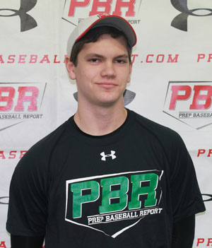 3/16/14 - 6-foot, 175-pound two-way player, solid build. On the mound works from an over the top slot, regular effort, slight collapse on back side. Four seam fastball is mostly straight, some finish, showed control of the zone, 81-83 mph. Curveball has 11/5 shape, occasional 12/6 action, showed feel, 69-71 mph. Offensively hits from an open stance, short stride, solid balance. Shows some strength at the plate, uphill path, bat speed present. 84 mph exit velocity from the tee. Defensively shuffles through the baseball in the outfield, footwork can improve. 4.65 runner down the line. Arm action is short and over the top, creates carry, 87 mph from the outfield.