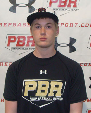 5.7.14 6-foot-1, 185-pound multi positional player with a strong frame. From the outfield he plays through balls athletically with a strong arm. Arm works from a high ¾ slot, 73 mph with carry. On the infield his arm works with same action, 73 mph with average carry. Ran an 8.14 60. At the plate he hits from a tall, open stance with heel lift load and launch technique. Swing is long and uphill with above average bat speed. Exit velocity was 82 mph off a tee. On the mound his delivery uses above average effort. Arm works short, high ¾ slot. Fastball was heavy with hard sink, 73-74 mph, consistent strikes. Throws a changeup, 61-65 mph with quality sink. Also throws a slip pitch, 60-65 mph.