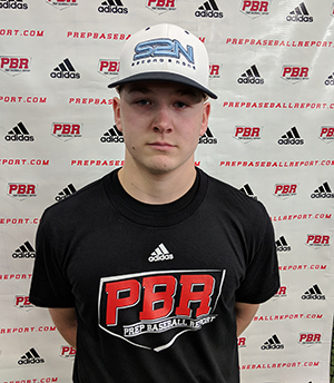 3/11/18 - 5-foot-10, 162-pound left-handed two-way player, average build. Profiles best on the mound, hands works in rhythm with lead leg, separates to full arm circle, high ¾ slot Fastball flashed occasional cut action, control of the zone, 75-76 mph. Slider has short acton, 64-68 mph. Feel for changeup, 67-70 mph. Offensively hits from an open crouched setup, leg kick trigger, reverse C load. Occasional bat speed and hard contact, path is flat at times, 83 mph exit velocity from the tee. Defensively showed natural actions around the bag, hands play, adequate arm, high ¾ slot, 72 mph across. 7.18 runner in the 60.