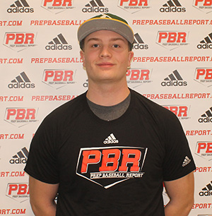 10/30/16 - 6-foot-1, 205-pound right-handed hitting third baseman with a large, strong frame. At the plate hits from an open stance with a leg kick stride and good balance. Pull, power hitter with an uphill swing path and a fast bat. Showed strength thru contact with an event best 98 mph exit velocity from a tee. Ran the 60 at 7.38. Defensively has a short arm action from a high ¾ slot. Throws showed carry across the infield throwing 80 mph. Fields the ball deep, projects for first base at the next level.