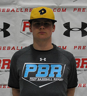 3/16/14 - 6-foot, 180-pound catcher, solid build. Offensively hits from a slightly open stance, short stride, lower half works, maintains strong balance. Path is shorter than most, creates hard contact, line drive type hitter, slight pull side approach. 80 mph exit velocity from the tee. Well above average defensive receiver, soft hands, clean exchange. Arm shows carry, 77 mph out of the crouch, short arm action, over the top slot. Posted pop times at 2.08-2.17. High follow catcher in the Class of 2016.