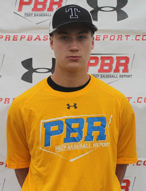 6/25/14 - Large frame for age, 6-foot-3, 180-pound two-way player. Right-handed hitter, tall balanced setup, short stride. Path stays on top of the baseball, flashed occasional hard contact, 80 mph exit velocity from the tee. Defensively plays with a long arm action showed some accuracy. Third base type, longer exchange, solid hands. On the mound uses a long arm action from high ¾ slot. Fastball showed run, 73-74 mph, breaking ball works on 11/5 plane, 59-62 mph. Changeup has fastball arm speed, occasional sink, 66-68 mph.