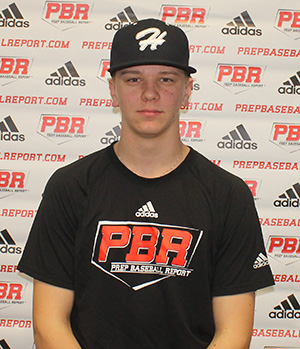 7/26/16 - 6-foot, 170-pound infielder, lean athletic shape, projectable type build. Balanced stance, hands drop slightly into arm bar load, slight toe tap stride. Loose hands, flashed lean bat strength, can add extension. 87 mph exit velocity from the tee. Defensively moved with gangly actions, still finding body control, raw athletic actions. Arm flashed occasional carry, 79 mph across, high ¾ slot with loose arm action. 4.69 runner down the line. Wet 1-for-5 in game play with a double.