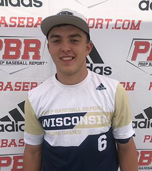 Five-foot-10, 185-pound two-way player, strong thick build, athletic body. Right-handed hitter, balanced setup, loads hands on time with leg lift trigger. Front foot heavy at times, present bat speed, strong hands, aggressive hitter with knack for the barrel. 98 mph exit velocity from the tee. Defensively profiles at third base, natural actions with soft hands, fluid feet, easy actions. Arm carries well, plus arm across, 91 mph, loose high ¾ slot, athletic release. 7.14 runner in the 60. On the mound fastball shows arm side run, topped at 85 mph, sat 81-83 mph, control of the zone. Curveball has 11/5 shape, late action at times, 73-74 mph. Feel for changeup, fastball arm speed, arm side action, 76-78 mph.