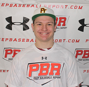 3/15/15- Strong frame, 6-foot, 195-pound catcher. Right-handed hitter, wide setup, reverse stride, solid balance. Shows promise with the bat, made hard contact, line drive type hitter with bat speed, strong build, some power potential. 86 mph exit velocity from the tee. Defensively arm action is short, over the top slot, 72 mph arm strength. Footwork can improve out of the chute, lacked direction, exchange is clean. 2.18-2.19 pop times can get even better with improved lower half. 7.46 runner in the 60.
