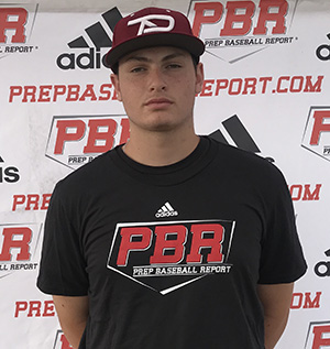 8/9/18 - 6-foot-2, 225-pound, right-handed hitting first baseman, thick, strong build. At the plate, balanced setup, top wrap load, short stride. Long, uphill bat path, pull side tendencies, loose hands generate bat speed, exit velocity topped 91 mph from a tee. Defensively, steady hands, clean exchange, short arm action high ¾ slot, throws topped 77 mph across the diamond. 7.61 runner in the 60. On the mound, tall till slight sit on back side, works in-line, square landing, head jerks, athletic finish. Short arm action, high ¾ slot, some effort and rhythm involved. Fastball, ran down in the zone, 81-83 mph, topped 85 mph. Curveball, 11/5 gradual break, 72 mph. Worked a 1-2-3 inning in one inning.