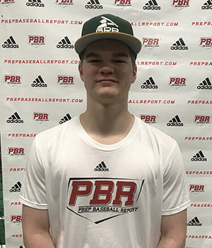 2/25/18 - 6-foot-1, 190-pound two-way player, strong athletic build. Showed well on the mound, arm works over the top, drives knee to top, loads and goes down the mound, balanced finish. Fastball works downhill, showed control of the zone, 79-80 mph, touched 81 mph. Curveball worked 12/6, 61-65 mph. Pulls changeup at times, 73-74 mph, occasional sink. Right-handed hitter, squared stance, reverse tap stride, stays balanced. Path is short, showed bat speed, mostly opposite field contact, late timing occasionally. 75 mph exit velocity from the tee. Defensively arm action is short, over the top slot, 79 mph across the diamond, flashed carry. Feet work through the baseball, quick exchange, average playable hands. 7.44 runner in the 60.