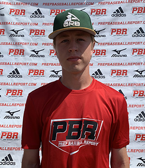 4/8/18 - 5-foot-11, 150-pound two-way player, thin lean build. Right-handed hitter, balanced stance, short stride. Showed loose hands and bat speed at times, uphill path, worked both gaps. 81 mph exit velocity from the tee. Defensively showed well above average arm strength for age, 70 mph out of the crouch, 79 mph from the outfield. Pop times ranged 2.18-2.23. Exchange and release is clean. Plays through and carries from the outfield, corner outfield profile. 7.66 runner in the 60. On the mound showed feel for his fastball, ranged 71-75 mph. Curveball flashed tight spin 62-65 mph, ability to drop for strikes. Changeup also showed feel, 62-65 mph.