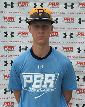 1.28.17 - Lean athletic body type, 6-foot-1, 165-pound two-way player. Right-handed hitter, open stance, bat wrap load, leg kick back to square. Mechanically sound approach, gap to gap contact with opposite field tendency. 80 mph exit velocity from the tee. 4.80 runner down the line. Arm plays from a short high ¾ slot, 71 mph. 2.19-2.37 pop times. Arm works out of same slot on the mound with more length. Uses slide step out of the stretch, delivery is on line. Fastball showed cut action, 72-74 mph, touched 76 mph. Curveball has 10/4 shape with short break, showed feel for the zone, 62-64 mph. Changeup is straight with slight arm side action, thrown with fastball arm speed, 66-69 mph.