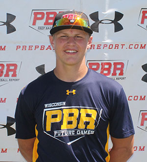 2/28/16 - Oregon State commit. Currently ranked No. 7 in the Wisconsin Class of 2017. Offensively hits form a balanced setup with a short leg lift stride. Gap to gap hitter with some pop. Fluid rhythm at the plate with a fast bat. Showed strength thru contact with 96 mph exit velocity from a tee. Ran the 60 at 7.00. Defensively has a long arm action from a high ¾ slot. Throws showed carry across the infield at 86 mph. Athletic actions with average hands. Projects best at third base or a corner outfield spot, and his bat will likely play in the middle of any lineup.